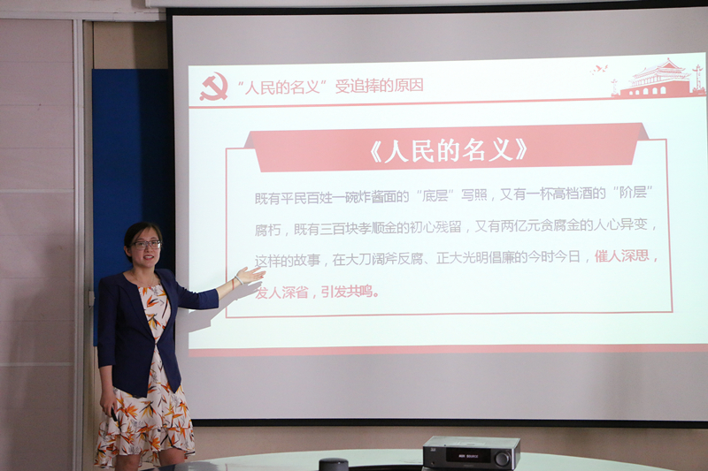 毕业生党员唐颂与大家分享热播电视剧《人民的名义》中的反腐与党务知识。