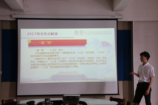毕业生党员王世锴带领大家从“热词”看两会。