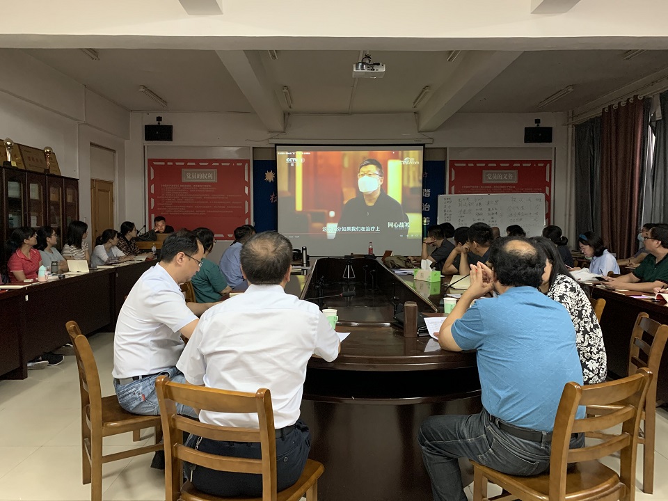会上,全体党员教师观看了纪录片《同心战疫》第二集《生死阻击》。