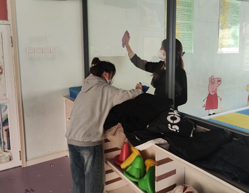 活动现场,同学们带领小朋友们认识数字、辨别颜色、认识水果、练习剪纸,同时也欣赏了孩子们的一些书画作品,切身感受到这些特殊孩子的才艺。随后同学们对教室进行清洁,希望给孩子们一个干净明亮的学习生活环境。孩子们灿烂的笑脸深深打动着在场的每一位同学。刘锦添表示,本次活动不仅是大家给孩子们带去了知识和快乐,孩子们也教会了我们很多在日常学习的过程中触及不到的知识和感受,让大家学会了责任和爱。