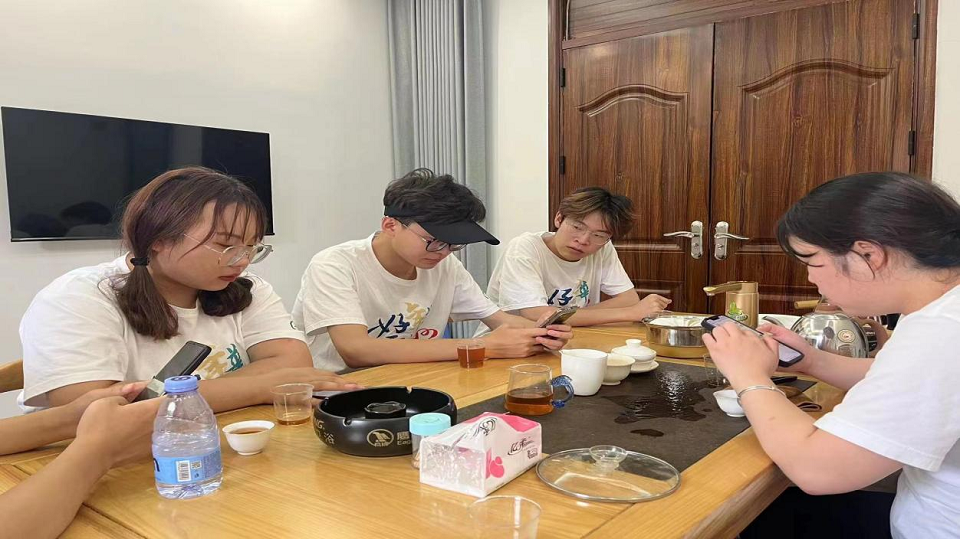团队成员在下湖村开展调研,队员进行视频剪辑