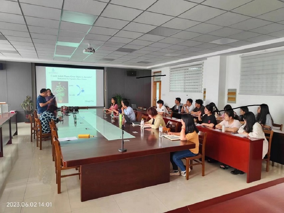 为了加强教育教学和科研实践深度融合,促进学生对科学前言的把握,全面提高人才培养质量, 6月2日下午,我院邀请现在任职于美国南卡罗莱纳大学生物系任的许明丽教授在文经楼C321会议室进行了“植物叶片形态发育分子机理”的学术专题报告。会议由周功克教授主持,相关研究方向的教职工和研究生参加。