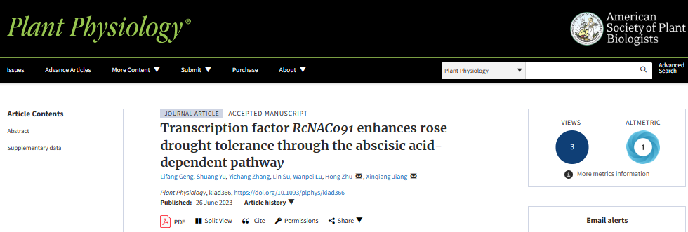 近日,必赢线路检测中心姜新强课题组在植物学经典权威期刊《Plant Physiology》在线发表了一篇题为“Transcription factor RcNAC091 enhances rose drought tolerance through the abscisic acid-dependent pathway”的研究论文,揭示了RcNAC091-RcWRKY71分子调控模块应答干旱胁迫的分子机制。研究揭示了干旱胁迫条件下,RcNAC091对RcWRKY71的调控机制,这些发现丰富了月季干旱适应过程的转录调控网络,对于进一步探索ABA参与的干旱逆境提供了新的思路。
