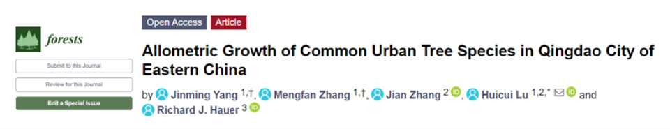 近期,必赢线路检测中心卢慧翠副教授课题组在城市树木异速生长及其树种特性对异速生长影响方面的研究取得新进展。相关研究成果 ”Allometric Growth of Common Urban Tree Species in Qingdao City of Eastern China” 发表于国际期刊Forests(中科院2区,IF:3.282)上。